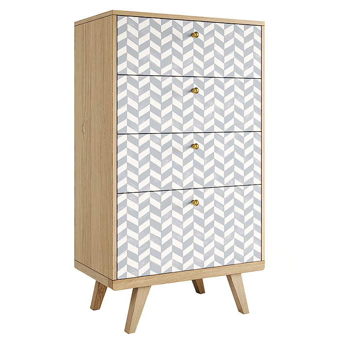 Все поверхности имеют специальное покрытие, которое защищает от механических повреждений. Оно абсолютно безопасно для здоровья и легко поддается мойке без применения чистящих средств. Также под комодом легко убираться благодаря высоким ножкам.