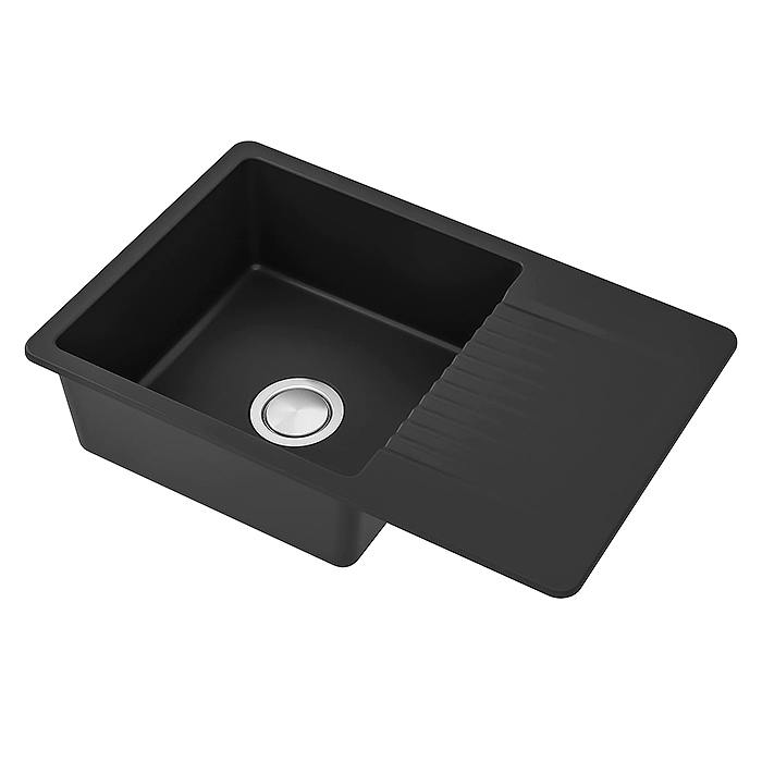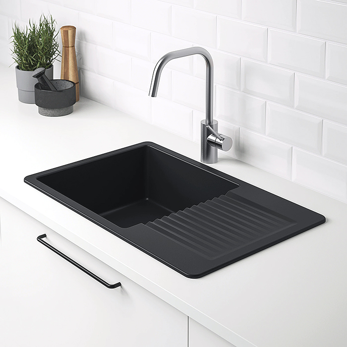 Прямоугольная чаша имеет безупречно гладкую поверхность, которая не впитывает бытовую химию и красящие вещества. Сок свежих ягод, масло со сковородки или краситель с торта — вы с легкостью смоете их со стенок и дна раковины.