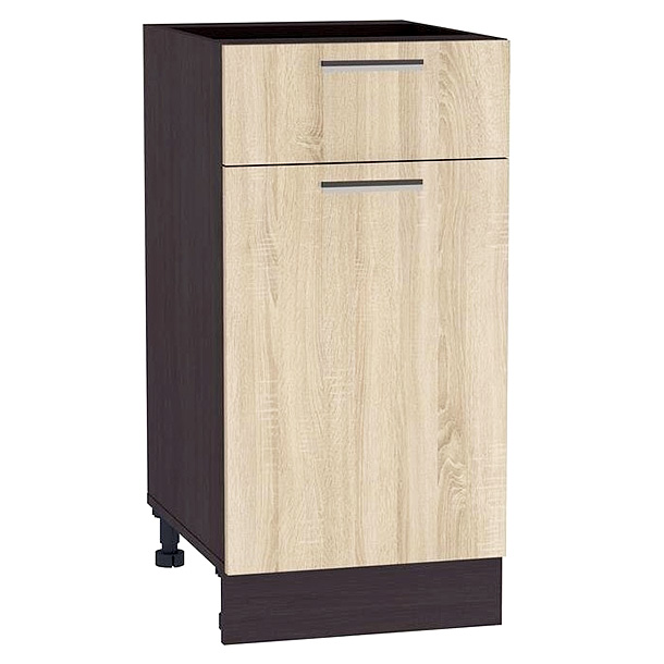Модуль с ящиком и несколькими полками отлично подойдет для кухонной утвари и столовых приборов. Глубина шкафа позволяет расставить посуду друг за другом или в пару рядов. Модуль имеет регулируемые опоры.