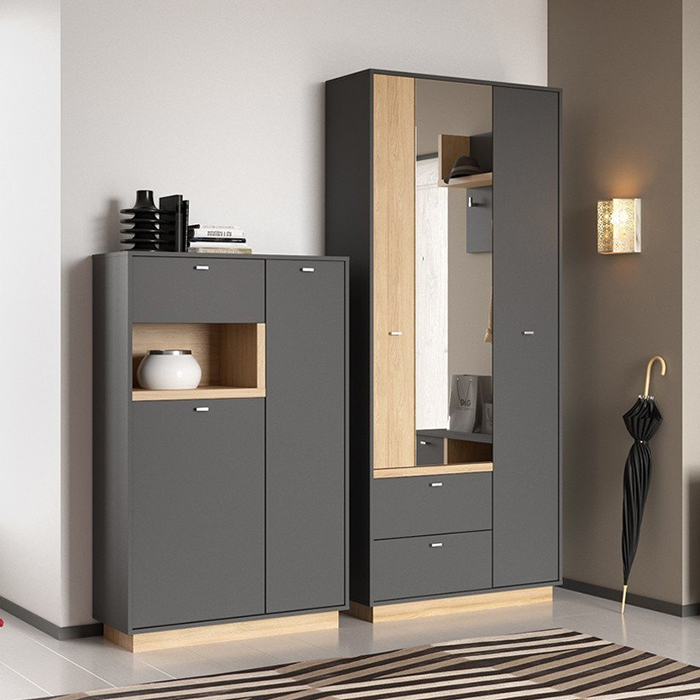 Прихожая изготовлена из прочных и экологически чистых материалов. Фурнитура подобрана с учетом безопасности, а острые края фасадов — закруглены. В магазине представлена мебель от известных производителей. На все товары распространяется гарантия.