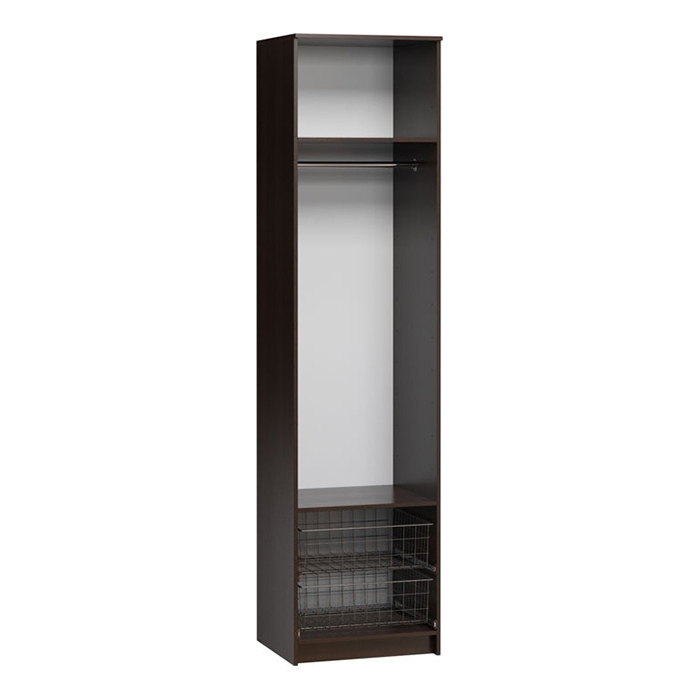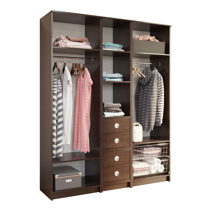 Вместительные стеллажи, выдвижные корзины, вешалки, брючницы и полки для обуви — вот составные элементы идеальной гардеробной. Система легка в монтаже и позволяет комбинировать модули, располагая их в нужном порядке.